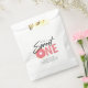 She's a Sweet One, doughnut themed, 1st birthday party favour bag. Cute pink doughnut with golden sprinkles, trendy pink and black typography design.