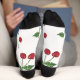 Add a touch of playful charm to your daily wear with this delightful cherry-themed design. The pattern features bright, ruby-red cherries—some in pairs with crisp green leaves and others as sweet singles—scattered across a clean, neutral grey-blue background. Its simple, illustrative style offers a fresh and modern take on a vintage fruit aesthetic, making these socks a perfect pop of color for any casual outfit.