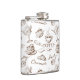 The flask itself is fine. It’s a cheap flask, obviously bought in bulk, however am prepared to overlook that. Given that it is a personalized item, I would have liked to have seen gift boxing instead of the generic packaging. Terrible printing, and/or quality. It’s a cheap, tacky vinyl. It is not cut straight and is also applied in a way that it is overhanging the bottom, causing the glue to catch on items and it will eventually roll and tear, damaging the wrap.