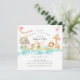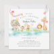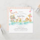 Adorable baby shower invitation featuring a parade of animals with crowns, balloons, musical instruments & bunting banners. Perfect design for a regular, virtual or drive by baby shower. Flip our invite over to view a damask back for an extra special touch.