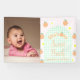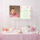 She's one sweet peach! First birthday with peaches, white retro flowers, and light green gingham. Photo template via Pixabay licensed under CC0 and must be replaced with your own photo