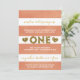 This sweet first birthday party invitation design by The Spotted Olive™ features bold peach stripes with the word "ONE" and a heart on each side filled with an image of glitter. PLEASE NOTE: THIS DESIGN ONLY FEATURES AN IMAGE OF GLITTER. THERE IS NO REAL GLITTER USED OR INCLUDED. THIS IS A FLAT PRINTED DESIGN. THERE ARE NO EMBELLISHMENTS. Copyright ©2014 The Spotted Olive™ | All Rights Reserved