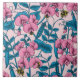 Sweet peas and bumblebees, pink and blue ceramic tile