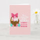 Designed with a soft pastel palette, this card shows a round-faced white bunny peeking from a woven basket with a gentle, affectionate look 🐰. Around the basket, decorated eggs cluster in friendly celebration, featuring polka dots, zigzags, and wavy lines in yellow, fuchsia, teal, and lavender. A large pink bow wraps the basket handle, adding a sweet, romantic touch as if it’s a gift meant for someone close. On the right side, the message “For a sweet Kiss on this first Easter.” appears in bold white lettering, standing out clearly against the background. Below the words, a tidy row of interlocking heart shapes in several pink shades suggests closeness and a shared moment 🌷. The blush-pink backdrop carries faint diagonal stripes that soften the scene and keep the focus on the bunny and eggs. Fine texture details show in the basket weave, while the eggs look smooth and glossy with crisp patterns. The hearts sit in a straight line beneath the text, each one slightly different in pink tone.
