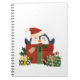 A cute happy penguin with a Christmas cap is looking forward to gifts