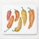 This mouse pad features an illustrated pattern of colourful red, orange, and yellow peppers. Artwork copyright: Dominic White. All rights reserved.