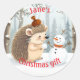 This cute hedgehog and snowman makes a perfect sticker for you to personalize with your child's name on. Helping keep each child's gifts separate this Christmas holiday. This carefully made AI picture will be loved by both children and adults this Holiday Season.