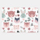 Sweet Pink Bear Fox And Bunny Forest Wrapping Paper Sheet