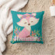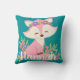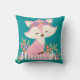 Sweet pink fox with flowers on teal blue background. Personalise with name or special message in modern script font