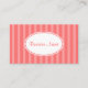 Candy pink stripes decorate this professional business card. Customise this retro style business card to suit your needs. The design is from original art. Use this business card for a bakery, catering, caterer, chef, candy, sweet shop, gourmet foods, ice cream, ice cream shop, cosmetologist, appointments, salon, etc....