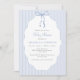 Sweet Pinstriped Blue Bow Baby Shower Invitation