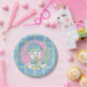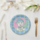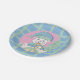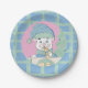 A sweet blue , green and pink paper plate for your winter Holiday party featuring a polar bear cub nibbling on a freshly baked Christmas cookie . You can choose the size of your plate and add some text if you wish .