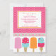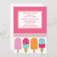 This 5x7 birthday party invite has a sweet popsicle theme. On the front, there are four popsicles on the bottom, with a square at the top where your customisable party information is. ©2010 BLACKLEAF DESIGN/BLACKLEAF STUDIOS