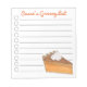 List-style grocery shopping note pad design features an original marker illustration of a slice of sweet potato pie. Just personalise with your information.