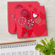 This playful design features a cheerful bouquet of lollipops in heart, swirl, and citrus shapes, tied together with a bold red bow. Set against a lively red-pink background with soft heart patterns, it’s perfect for Valentine’s Day, kids’ parties, or any occasion that calls for a little extra love and fun.