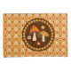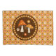 Sweet retro cottagecore style design features centre orange capped forest mushrooms with flower pattern background