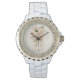 Embrace timeless elegance with the "Sweet Rosé Ballet Soirée" personalised watch, a beautiful accessory that blends classic style with enchanting design. The watch face showcases a soft, graceful illustration of lustrous ballet slippers tied with flowing pink ribbons, nestled amongst delicate blush roses and a sprinkle of golden sparkle. It's a sophisticated way to keep track of time while carrying a piece of art on your wrist.