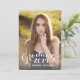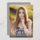 Perfect photo card inviting your family and friends to your daughter's graduation party. Sweet Script | Graduation Party Invitation for 2014. Design by Elke Clarke © for MonogramGallery. Add your own photo and text. An elegant retro white script font text overlay with the words "2014 Graduate" is printed on the front with a slight grey ombre effect. Add your invitation text on the back of the card with a modern white font on a (printed photo effect) vintage light grey or grey kraft paper background. Other styles and colours available.
