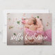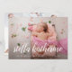 Elegant birth announcements feature your favourite newborn photo in full bleed, with baby's name overlaid in white calligraphy script. Personalise with baby's birth stats beneath. Add six additional photos to the back in a collage layout, with the parents' or family's names in the centre.