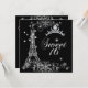 Sweet Sixteen 16 Black Silver Glitter Eiffel Tower Invitation