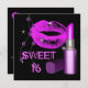 Sweet Sixteen 16 Hot Pink Lips Black Lipstick Invitation