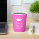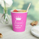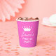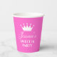 Sweet sixteen 16th Birthday party hot pink Paper Cups personalised with name. Cute design for sixteenth Birthday of teen girl. Elegant script text and princess crown. 16th Birthday celebration design. Pink and white. Available in different shapes. Trendy party supplies with custom text.