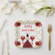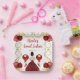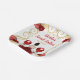 This sweet sixteen plate features an elegant gold frame, a beautiful princess with brown hair and a red dress, flowers and a balloon. This is perfect for a sweet sixteen birthday party.