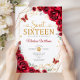 Sweet Sixteen Elegant Chic Red Roses Gold Invitation