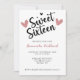 Sweet Sixteen Heart Birthday Invitation. Join us for a magical Sweet 16 celebration. Guests will enjoy fun activities, delicious treats, and dancing the night away under twinkling fairy lights. Adorn your celebration with heart-shaped decorations and a stunning pink and white birthday cake.
