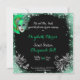 Beautiful turquoise green, ornate masquerade mask, framed with sparkling turquoise glitter with silver glitter corner accents. Background colour can be changed to any colour you like. Gorgeous invitations for your Sweet Sixteen, Mardi Gras celebration BAt Mitzvah, or Quinceanera. Personalise with your event information.