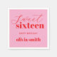 Minimalist sweet sixteen 16th birthday napkins featuring simple modern typography in pink and red colour.