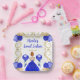 This sweet sixteen plate features an elegant gold frame, a beautiful princess with red hair and a royal blue dress, flowers and a balloon. This is perfect for a sweet sixteen birthday party.