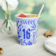 "Happy Birthday Sweet 16" text in blue with sparking glitter effects forms this elegant word cloud paper cup design. Background color is optional and can be changed if preferred. Search ID265 to see other color choices and additional products with this design.