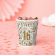 "Happy Birthday Sweet 16" text in gold with sparking glitter effects forms this elegant word cloud paper cup design. Background color is optional and can be changed if preferred. Search ID265 to see other color choices and additional products with this design.