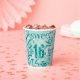 "Happy Birthday Sweet 16" text in teal blue with sparking glitter effects forms this elegant word cloud paper cup design. Background colour is optional and can be changed if preferred. Search ID265 to see other colour choices and additional products with this design.
