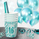 Sweet Sixteen Sparkle Word Cloud Teal ID265 Paper Cups