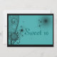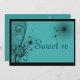 Pretty Sweet Sixteen Invitation with turquoise background and black stars and flowers. You can create a Bat Mitzvah, Quinceanera invitation if you like. Customise to suit. Choose your favourite colour and font.