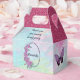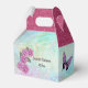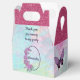 This pretty favour box will not only be a handy place to put party favours, it is also a table decoration. It coordinates with other items in my "Sweet Sixteen" collection. You can change all of the text. The top part of the box is bright pink faux glitter. The rest of the box is a pastel mottled design of pink, blue and purple. On the front of the box is a dark purple thin oval frame decorated with a graphic of light purple gathered ribbon flowers with a pearl centre and the honoree's name in the centre. On each side there is a purple butterfly. The back of the box has a simple spray of the same flowers as on the front with text that says "Sweet Sixteen" and the year. Change or remove the text to personalise and make this favour box for an occasion. Thanks for looking at my design.