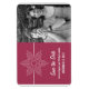 Announce your holiday or winter theme wedding with this Sweet Snowflake Photo Save the Date Premium Magnet. Featuring a delicate and elegant white snowflake and thin stripe on a solid fuchsia pink background, this fun design is easy to customise. Simply add your own photo and wedding details in the text fields provided or click on "Customise It" to find more personalisation options.