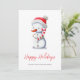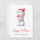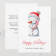 Simple business holiday card with an illustration of a snowman holding a candy cane. Add your own message and logo at the back of the card. Illustrated and designed by Patricia Alvarez.