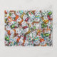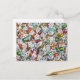 A festive design featuring a mixture of cute chocolate snowmen in brightly-coloured foil wrappers. Postcard with a white, red, green, blue, gold and purple customisable design for you to personalise with your own text, pictures and ideas. Created using an original photograph and digital techniques by Jess Perry.