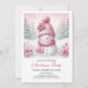 Sweet Snowy Forest Pink Snowman Editable Christmas Invitation
