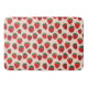 A sweet repeat pattern of juicy strawberries and the plant's white flowers are scattered across a pale rose pink background. This bath mat is a fun addition to your bathroom home decor for the sweet, red, fruit lover.
