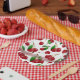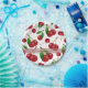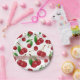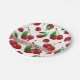 Cherry fruit pattern paper plate with single and paired cherries with stems and green leaves still attached - customisable space for name of family, business or organisation ... perfect for a summertime gathering - by katz_d_zynes ::: for customisation assistance, click the "Ask this Designer" link below
