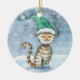 Sweet Tabby Cat in Holiday Hat Ornament