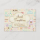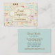 Fun whimsical bakery business card or event catering business full of delightful sweets, cakes, cupcakes and more in pastel aqua, pink, mauve and ivory with Chef hat banner ready to display your business name. Business Card back is fully customisable by you.