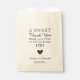 A modern typography style design. The text reads A Sweet Thank You From Us To You On The Day We Said I Do. The design is finished with a simple hand drawn heart. Personalise these bags with a couples names and wedding date. These favour bags are great for a wedding candy bar buffet. Or for popcorn treat bags. The choice of ecru or kraft paper also adds a rustic element to your wedding reception.