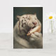 Send smiles with this surreal, humorous illustration of a white tiger enjoying a decadent slice of pie. Ideal for birthdays, celebrations, or just because.