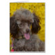 Adorable tiny brown poodle with yellow flowers.