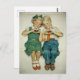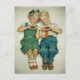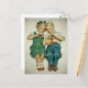 A charming boy and girl sit side by side, forming matching heart shapes with their hands. Their classic vintage clothing—her green dress and red shoes, his rolled jeans and bright orange tie—adds nostalgic warmth. With rosy cheeks, soft smiles, and gentle innocence, the artwork beautifully captures the timeless sweetness of childhood affection.
